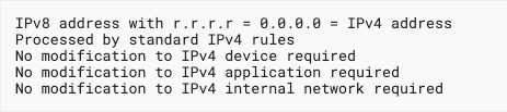 Los Detalles de esta propuesta es posible revisarla en el siguiente link:  https://www.ietf.org/archive/id/draft-thain-ipv8-00.html